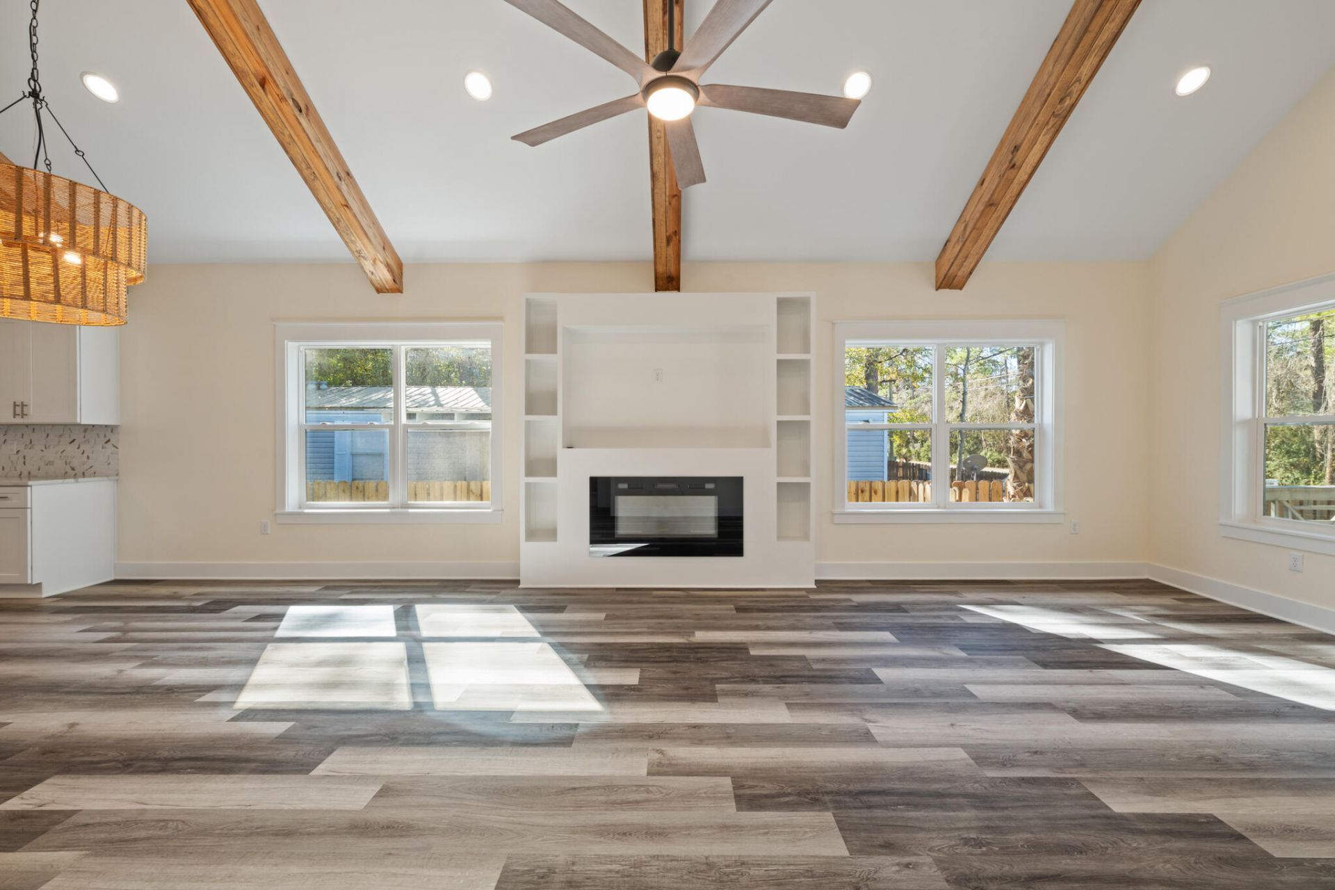 No HOA! Experience investment and relaxing coastal living in this brand-new beach home! Perfectly positioned near Choctawhatchee Bay and the pristine white sands of the Emerald Coast. Just moments from boating access at Cessna Landing and minutes from the Gulf, this New Built, offers an exceptional balance of luxury, lifestyle, and location.The interior is thoughtfully curated with vaulted ceilings, exposed wood beams, and an open-concept design that seamlessly connects the living, dining, and kitchen spaces. The chef-inspired kitchen features quartz countertops and soft-close cabinetry, while the living room invites relaxation with a warm fireplace and inviting coastal ambiance.