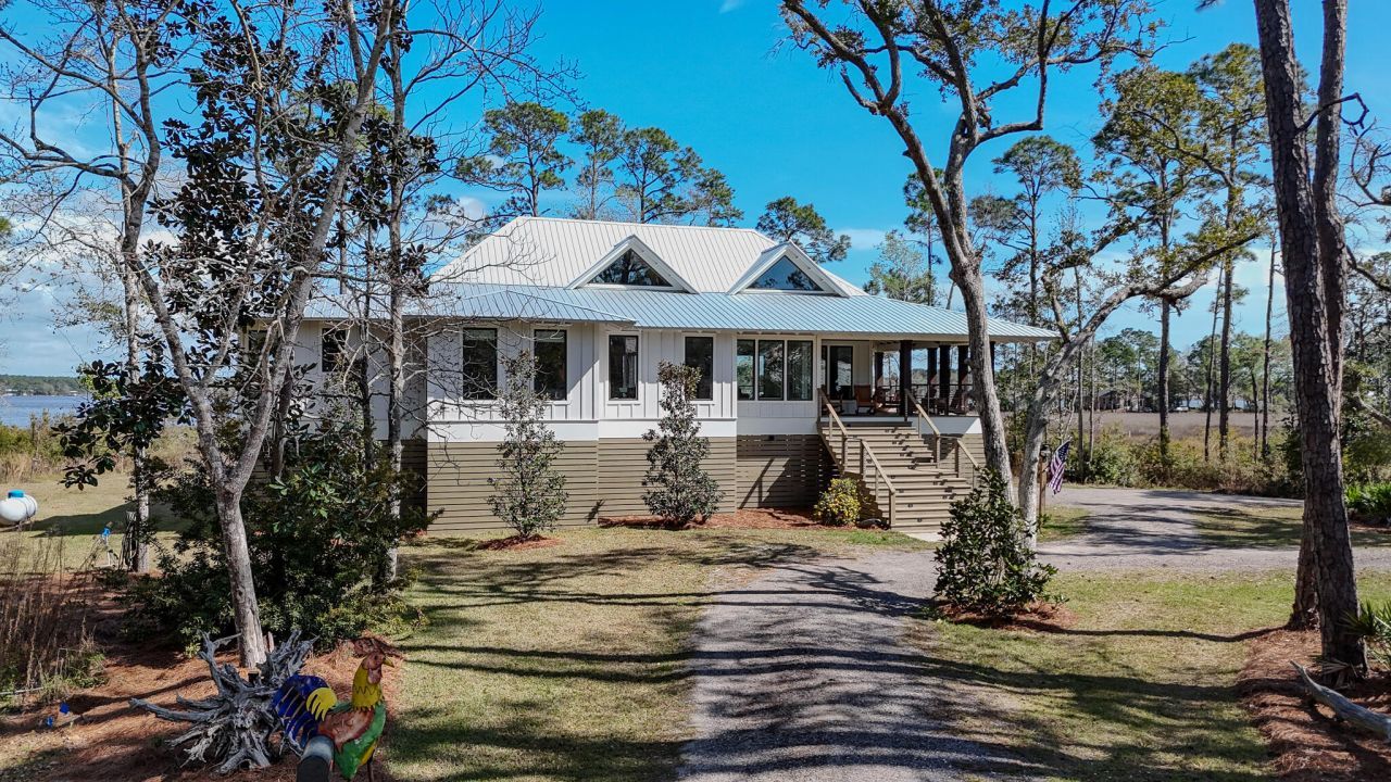 Waterfront Luxury on 3+ Acres with 300 Ft of Bayou FrontageWelcome to 160 Eventide Lane in Freeport, FL, a breathtaking, Simmons Home Builders custom built waterfront home inspired by Southern Living's New Tideland Haven floor plan. Perfectly situated on over 3.07 private acres with more than 300 feet of frontage on beautiful Lagrange Bayou, this property offers sweeping panoramic water views and the ultimate coastal lifestyle.This thoughtfully designed home features 2,622 square feet of heated and cooled living space, showcasing 3 bedrooms, 4 full bathrooms, plus an additional office/study or flex room that can easily serve as a home office, guest room, or hobby space. The open-concept design is highlighted by vaulted ceilings, exposed wood beams, and walls of windows that flood the home with natural light while capturing stunning bayou views. A striking driftwood gas fireplace anchors the living room, while a built-in surround sound music system enhances the home's entertainment experience.The chef's kitchen is beautifully appointed with modern appliances, a gas range, custom pecky cypress hood vent, gold/brass fixtures, and an enormous walk-in pantry, offering both style and functionality. Just off the kitchen is a formal dining room, perfect for hosting gatherings and special occasions. Sliding glass doors lead to expansive wraparound porches, seamlessly blending indoor and outdoor living while showcasing the tranquil waterfront setting.The spacious primary suite serves as a relaxing retreat and features a private balcony overlooking the bayou, providing the perfect spot to enjoy morning coffee or evening sunsets. The luxurious primary bath includes a freestanding soaking tub, separate tiled shower, and an oversized walk-in closet. Throughout the home you'll find cypress tongue-and-groove ceilings, beautifully tiled showers, custom finishes, large guest bedrooms with walk-in closets, and abundant storage space.On the ground level, the property offers a one-car garage with an additional 800-square-foot insulated, heated, and cooled space that is not included in the home's 2,622 heated/cooled square footage. This versatile area includes an outdoor shower, commercial-style restaurant sink, and covered space ideal for outdoor grilling, lounging, relaxing, and entertaining, making it perfect for hosting friends and family after a day on the water.Enjoy true waterfront living with a 300-foot private dock leading to your very own covered boat lift and sundeck, providing easy access to boating, fishing, paddle-boarding, and breathtaking sunsets across Lagrange Bayou to the Choctawhatchee Bay.Located in the desirable NO HOA, Cross Creek Shores subdivision just off Bay Loop Road (with over 15 miles of adjacent paved walking or biking path), this rare waterfront estate offers privacy and space while remaining just minutes from the beaches of South Walton, Hammock Bay General Store, Freeport Regional Sports Complex, Props Brewery, public boat launches, a brand new Marina with boat storage, more dining, and shopping.So if you've been searching for a luxury custom waterfront home with acreage, superior craftmanship, breathtaking views, and direct bayou and bay access, this one-of-a-kind property is a must see; never miss a sunrise or sunset on the water again.